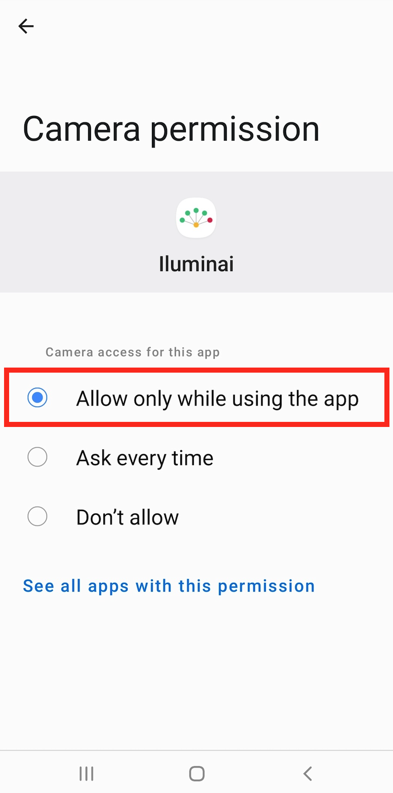 Enabling Camera Permissions for the Iluminai Mobile App