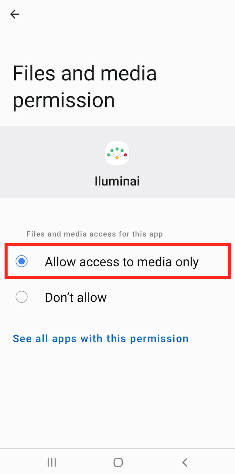 Allow the Iluminai Mobile App to have access to your phone's file system.
