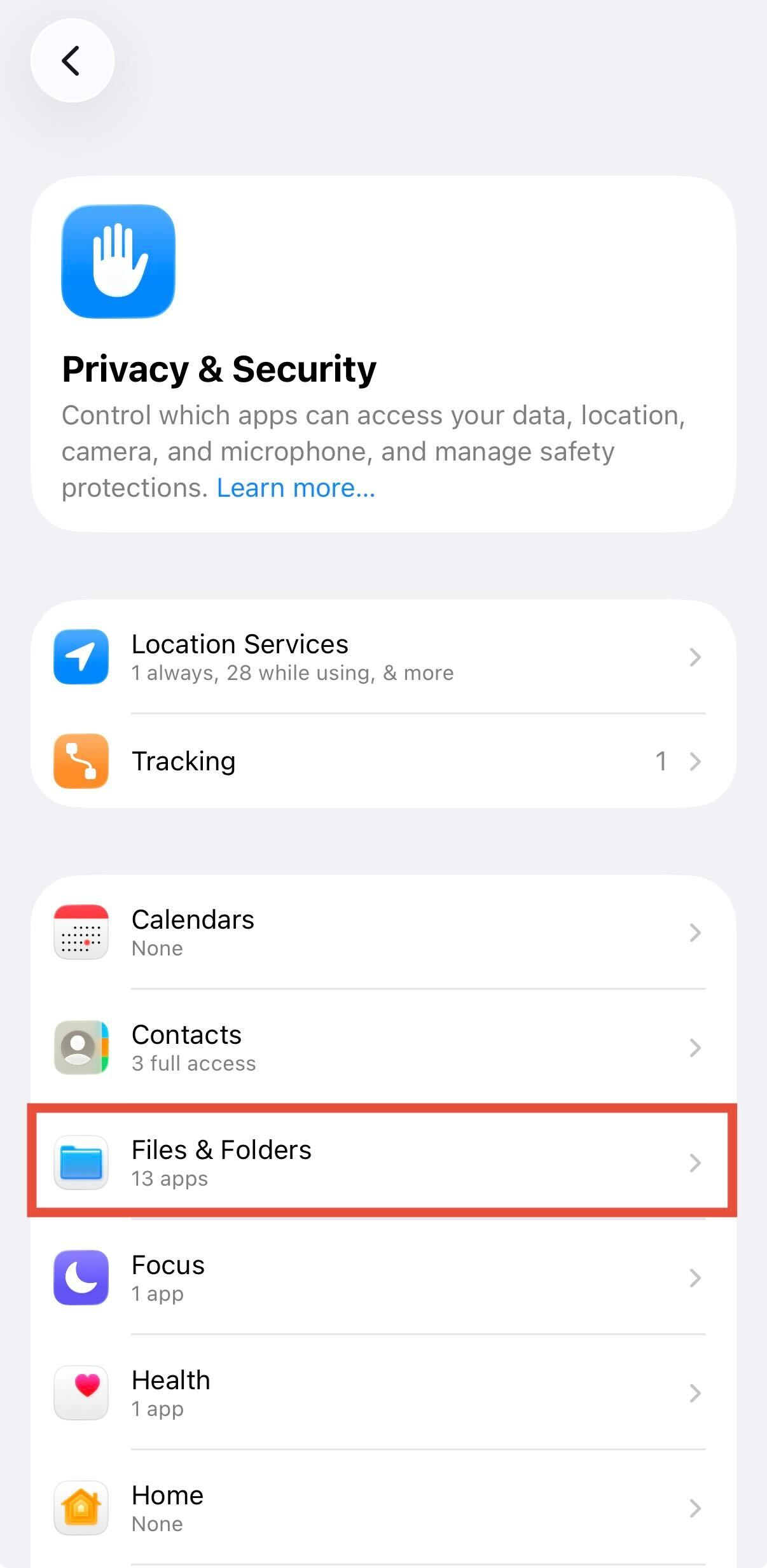 - Go to Privacy & Security