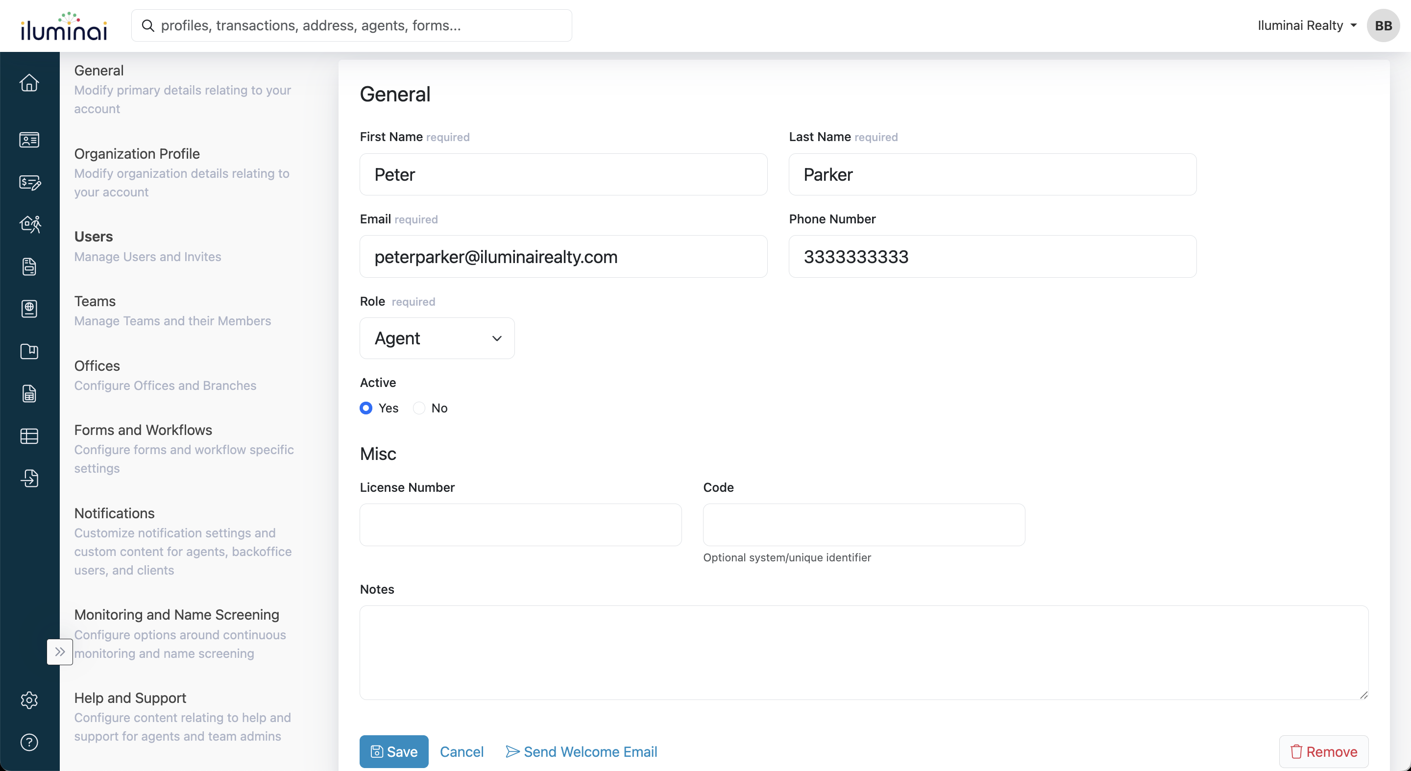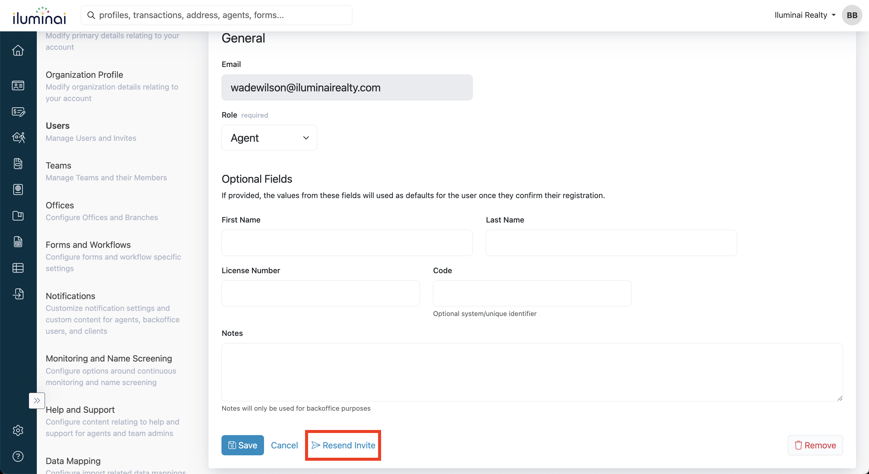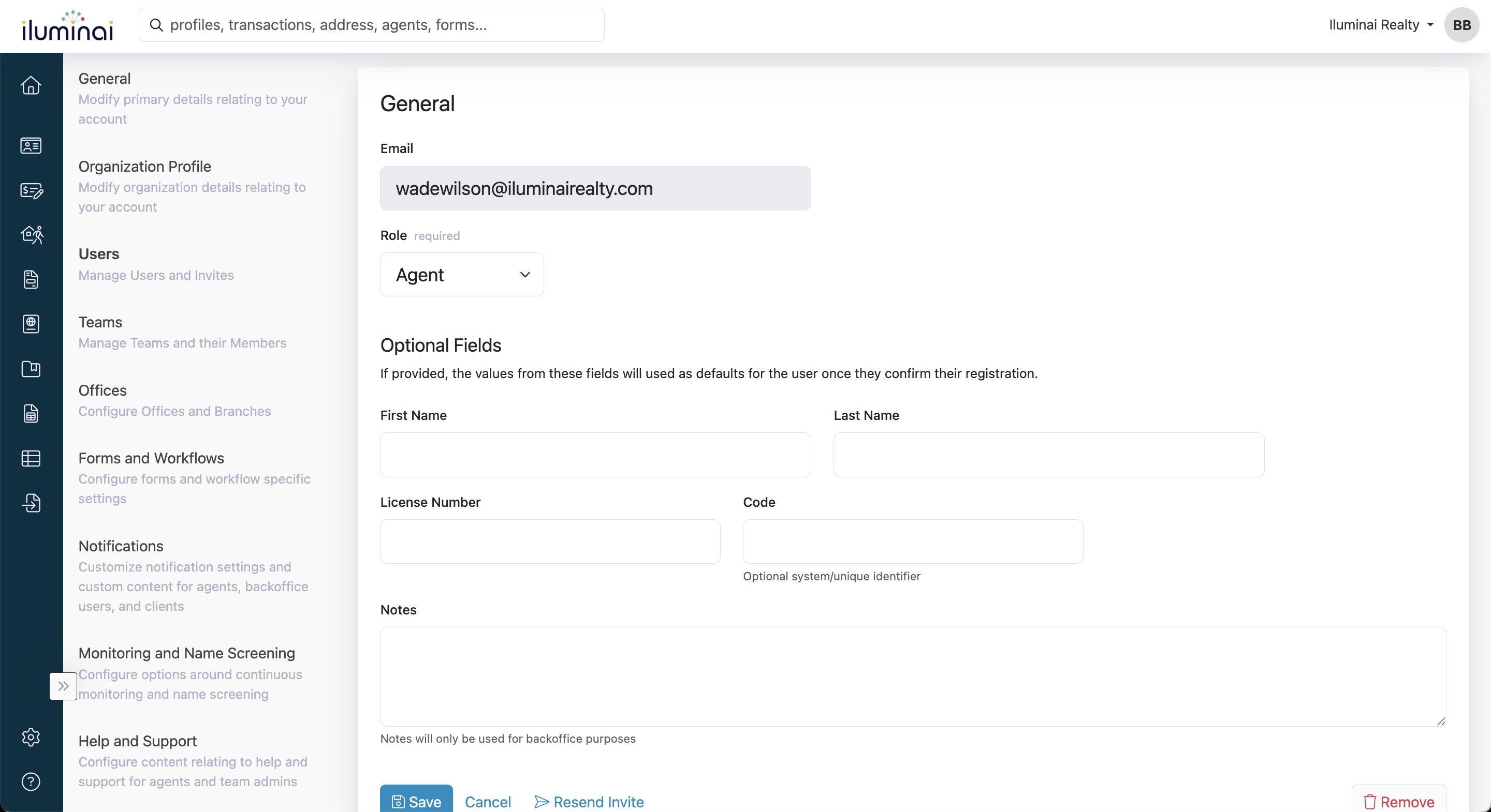 Note: When changing the role of an Agent to that of an Admin, the Agent will no longer be able to create and manage their own forms and documents.