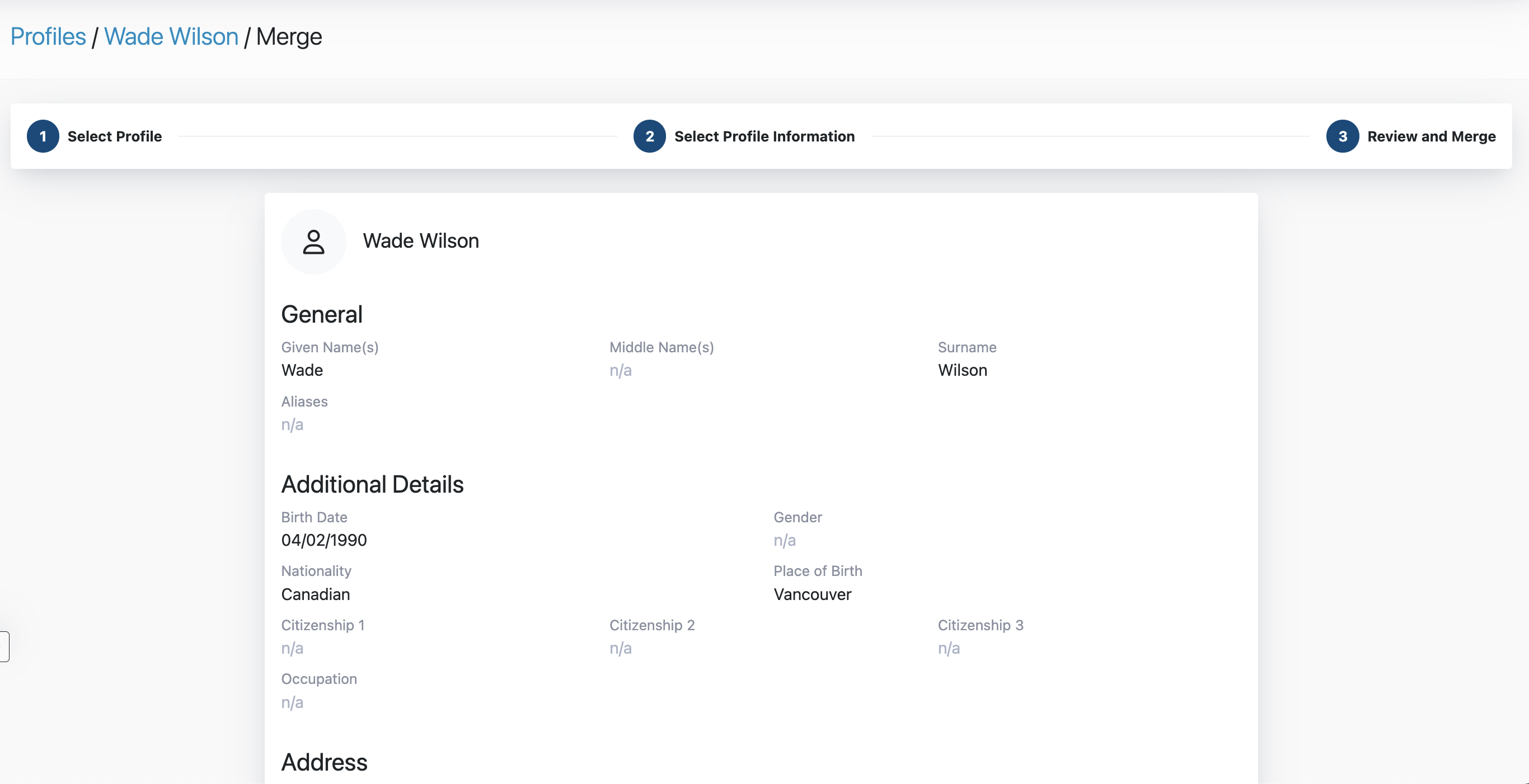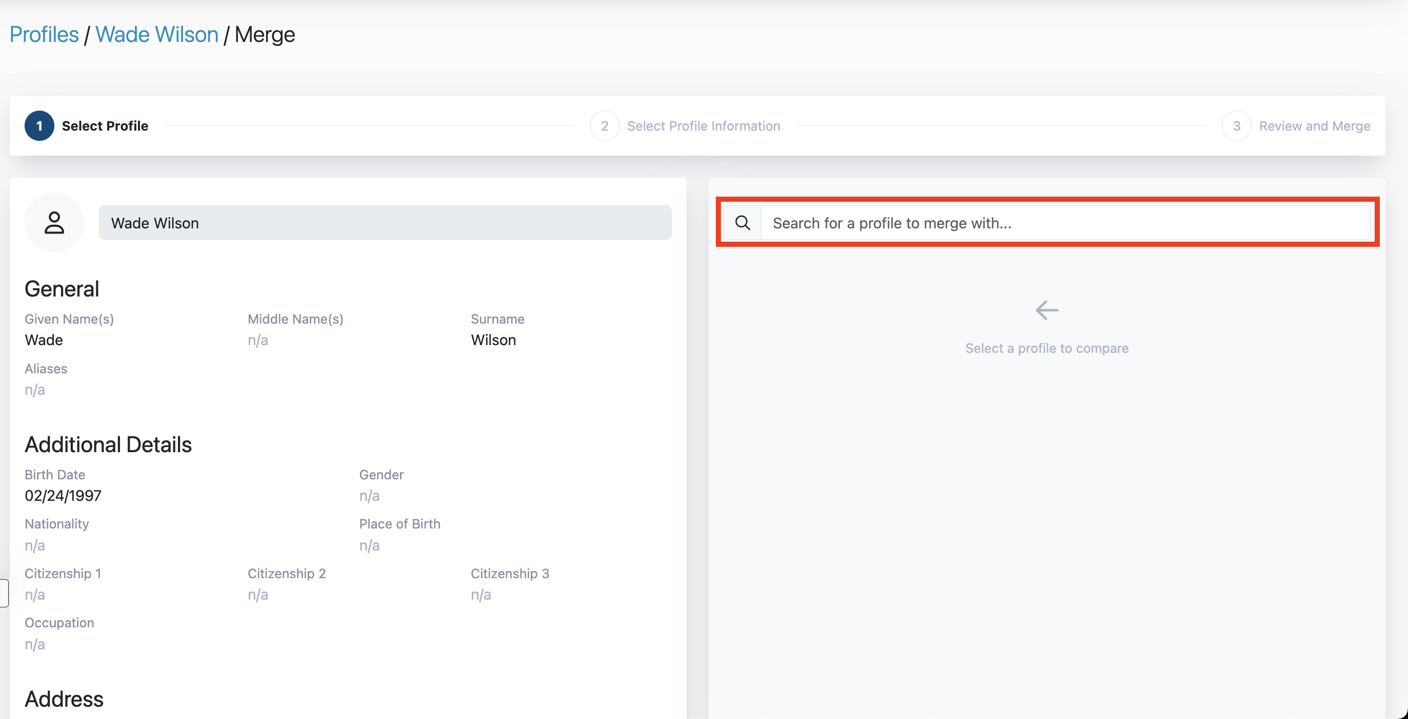 Merging a Profile follows a 3-step guided process: